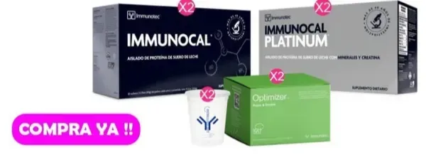 Gran Oferta 33% descuento en este pack incluye: 2 Immunocal, 2 immunocal Platinum, 2 Optimizer R&V y 2 Vasos mezcladores