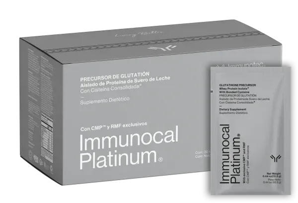 Immunocal Platinum contiene todos los beneficios naturales de Immunocal y dos componentes adicionales: péptidos moduladores de citocinas (Cytokine Modulating Peptides, CMP)™ y la fórmula moduladora de redox (Redox Modulating Formula, RMF)™. Estos dos componentes ayudan a bajar los niveles de acidez en el organismo, respaldar el equilibrio natural del PH, reducir la inflamación, proteger ante el daño celular y fortalecer los huesos previniendo la pérdida de calcio.